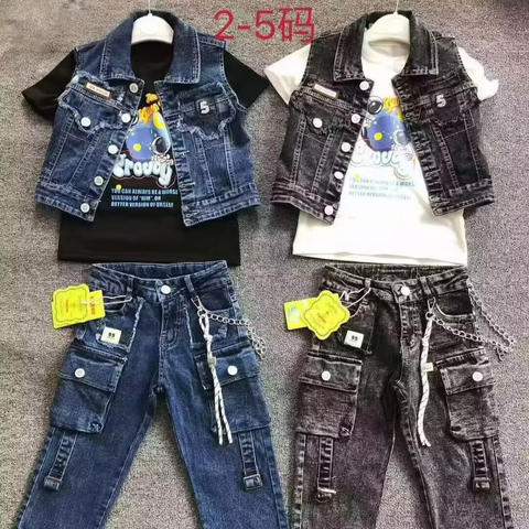 9.25ドルモデルYQ291年齢2〜5歳子供子供カーゴボーイズ柄子供ジーンズ素材子供セット3個