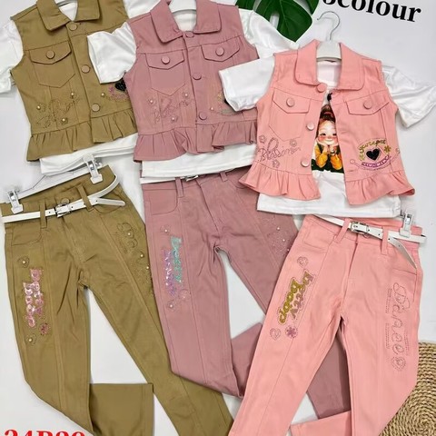 9.8ドルモデルYQ285子供用ジーンズセット高品質デニム新作カスタム女の子スリムフィット子供用ジーンズ色付き