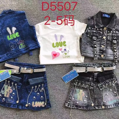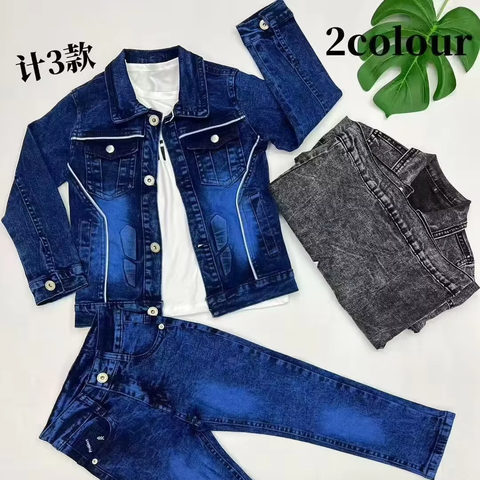9.8ドルモデルYQ284卸売品質ジーンズ素材服女の子デニム子供セット色付き