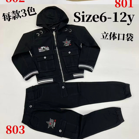 9.85ドルモデルYQ288秋年齢6〜12歳モト & バイカーボーイズデニムキッズ人気男の子服セット3個入りジャンパンツ