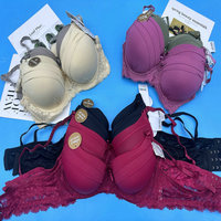 1.28ドルモデルYWB104サイズ38- 44プッシュアップフルカバーフローラルブラ厚いパッド入り格安アンダーワイヤーブラフォーム付き