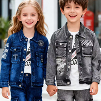 11.5 דולר דגם YQ288 סתיו גילאי 6-12 שנים אופנוע ורוכבי אופנוע בנים ג'ינס ילדים סט בגדים פופולרי לבנים 3 חלקים עם מכנסי ג'ינס