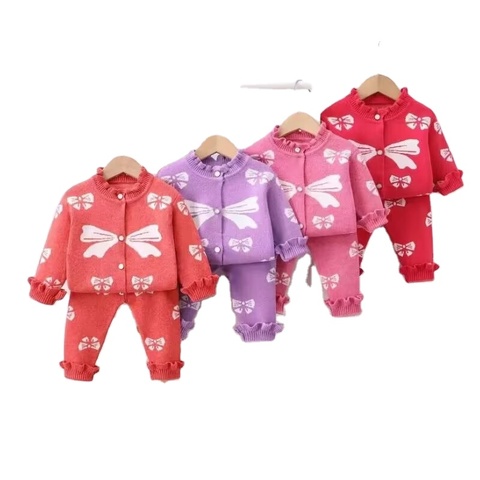 CYF034สองชิ้นสำหรับเด็กผู้หญิงชุดเสื้อสเวตเตอร์ถักให้ความอบอุ่นในฤดูหนาวพิมพ์ลายแตกต่างกัน3.6ดอลลาร์